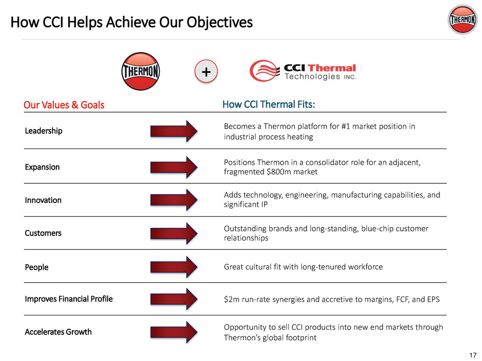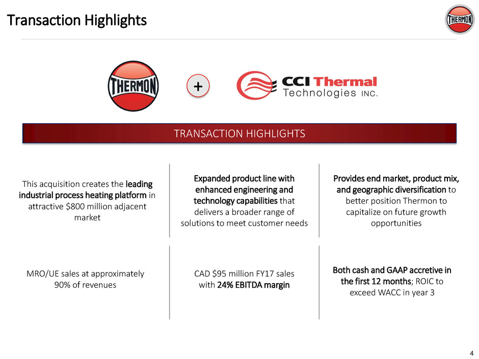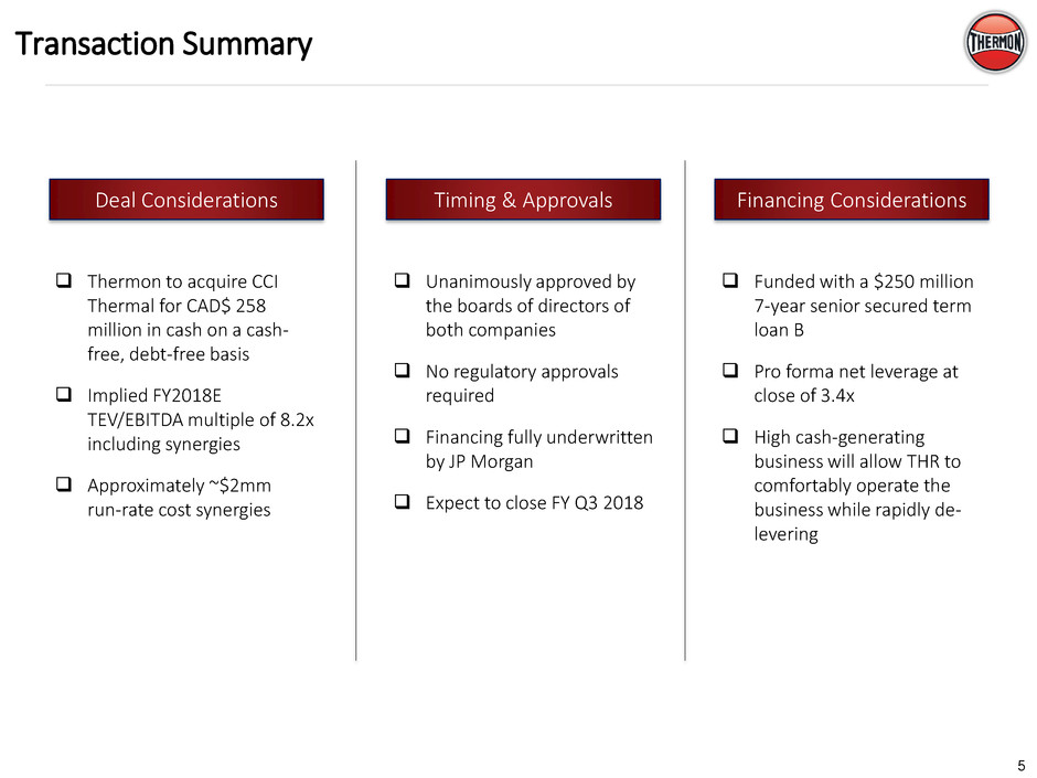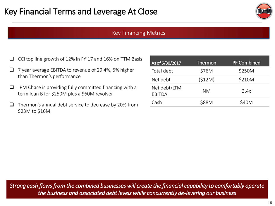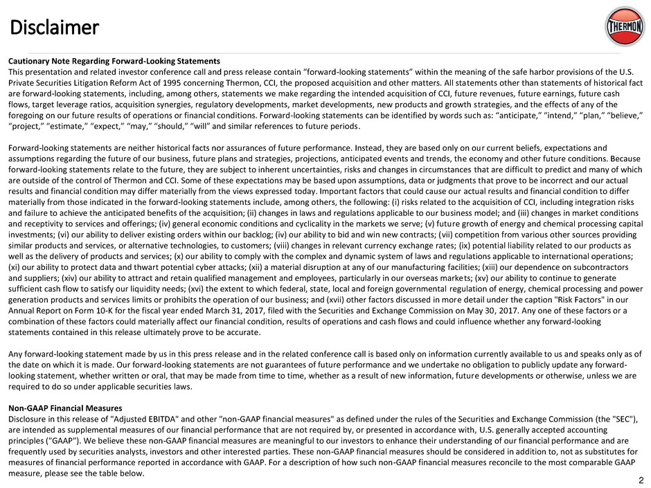 Private Securities Litigation Reform Act of 1995 concerning Thermon, CCI, the proposed acquisition and other matters. All statements other than statements of historical fact