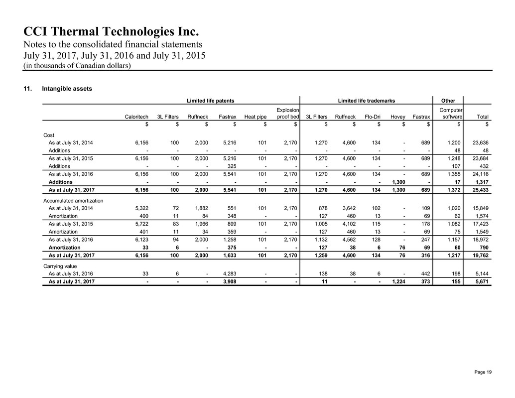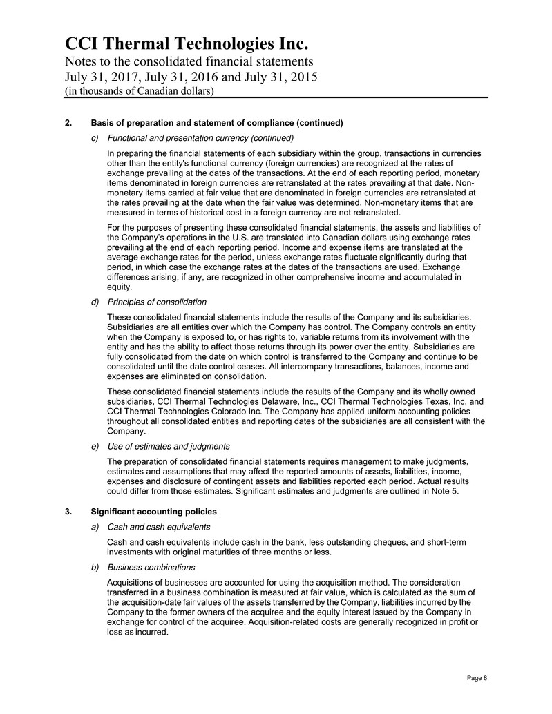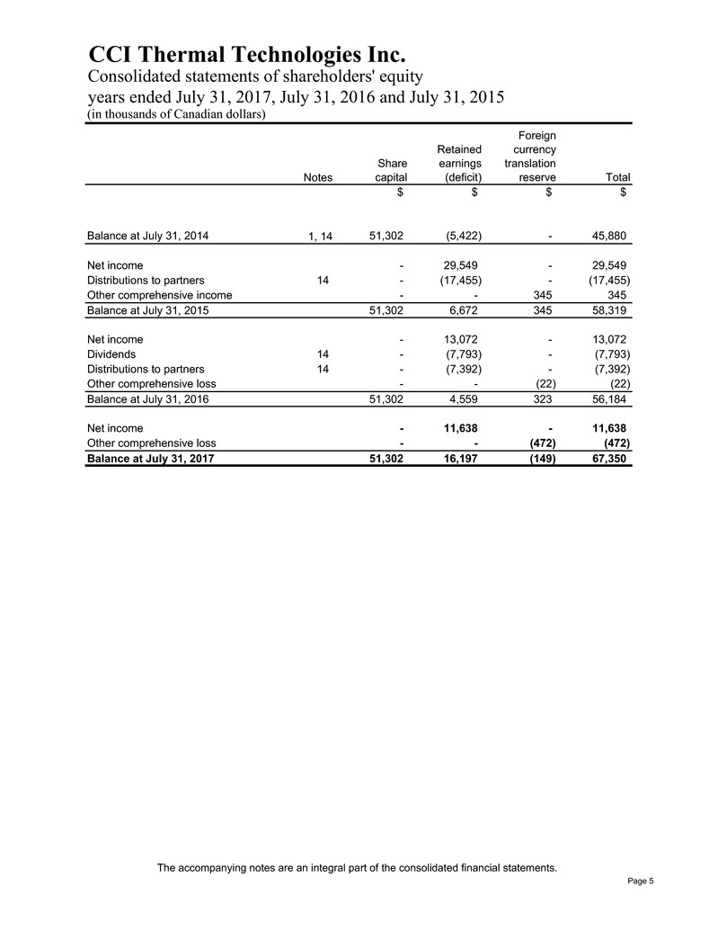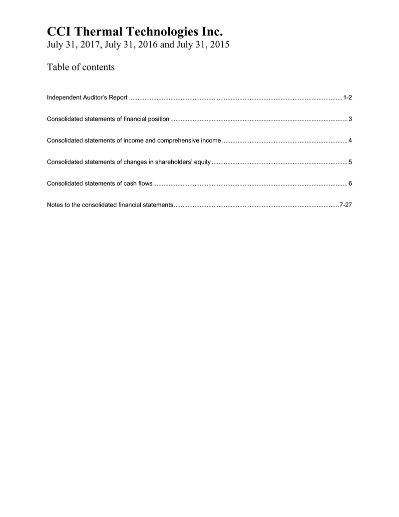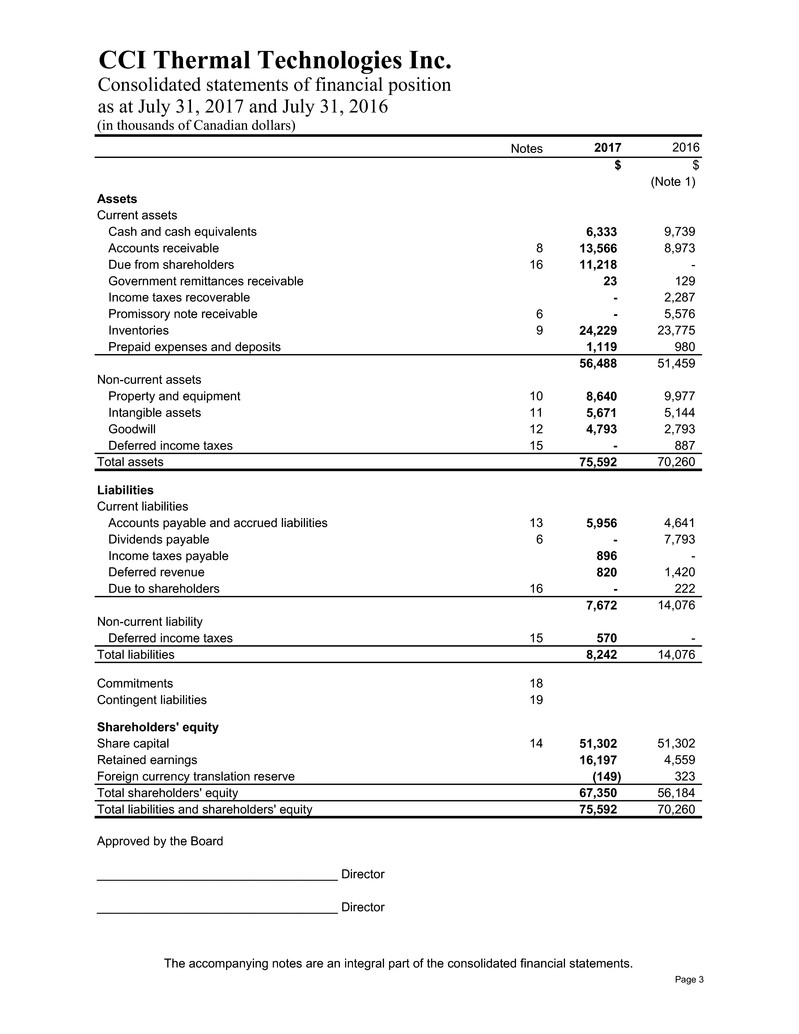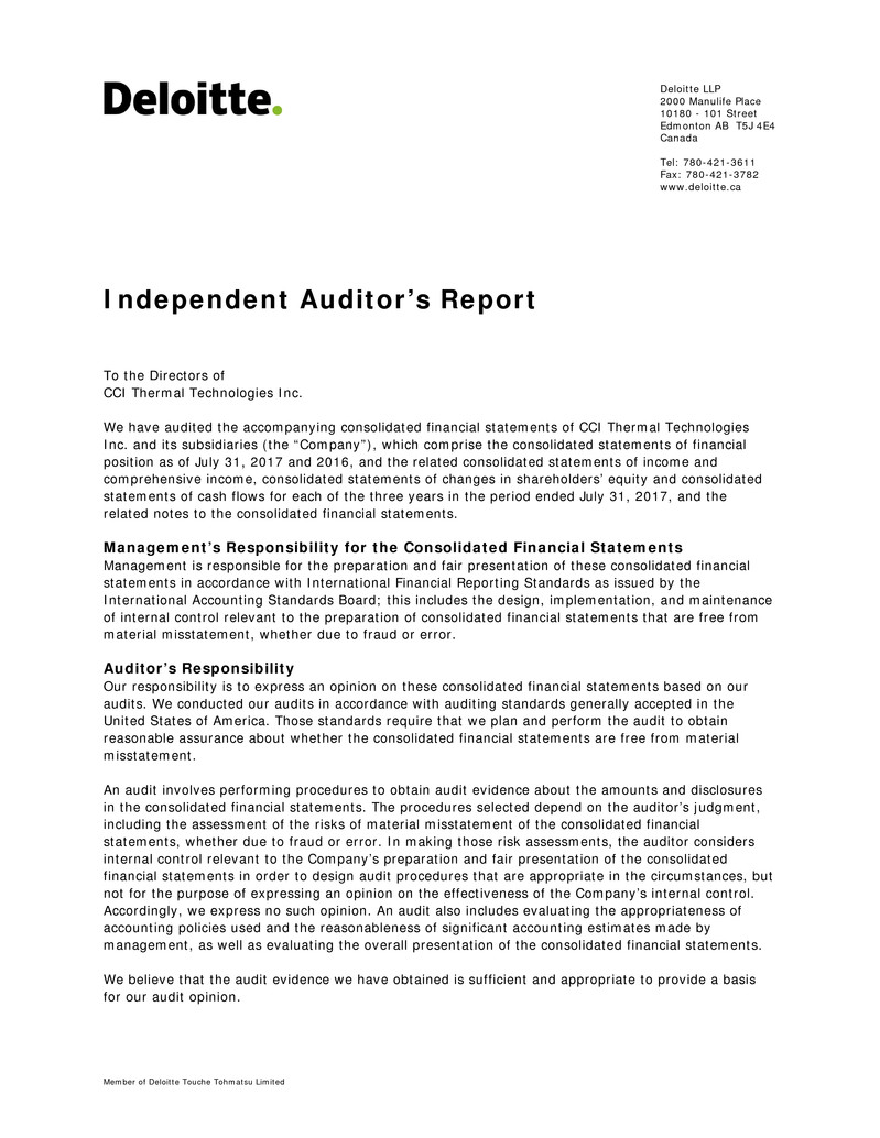 respects, the financial position of CCI Thermal Technologies Inc. and its subsidiaries as of July 31,