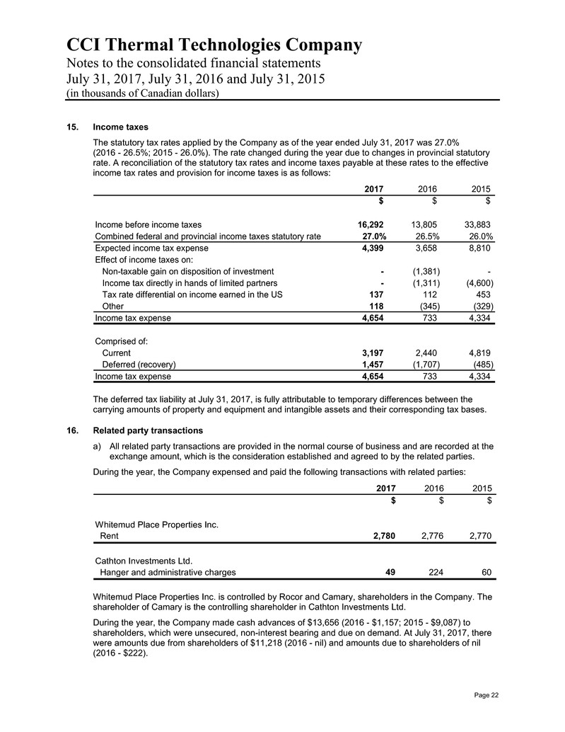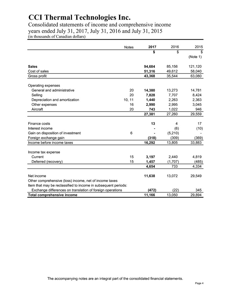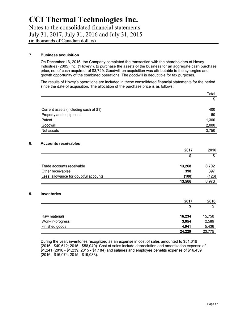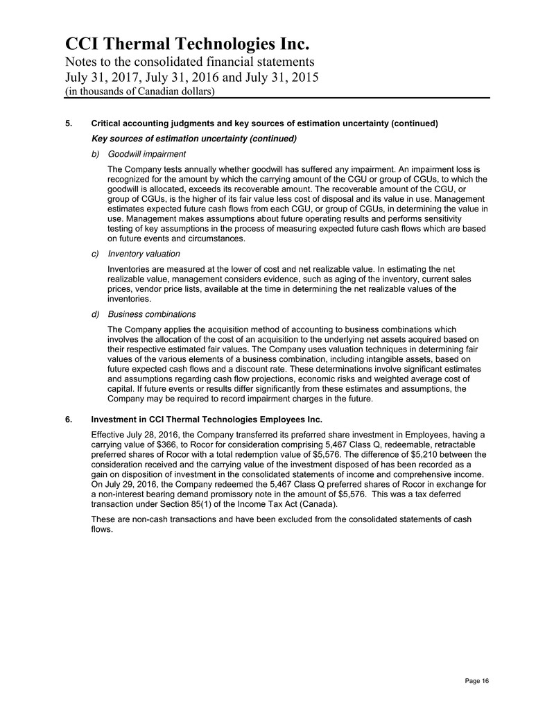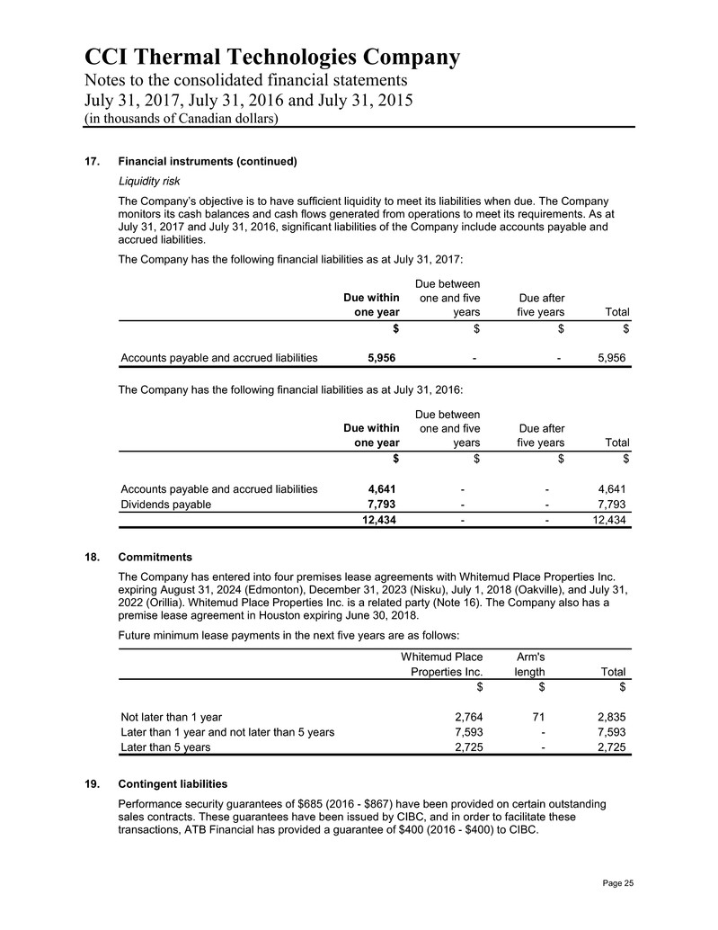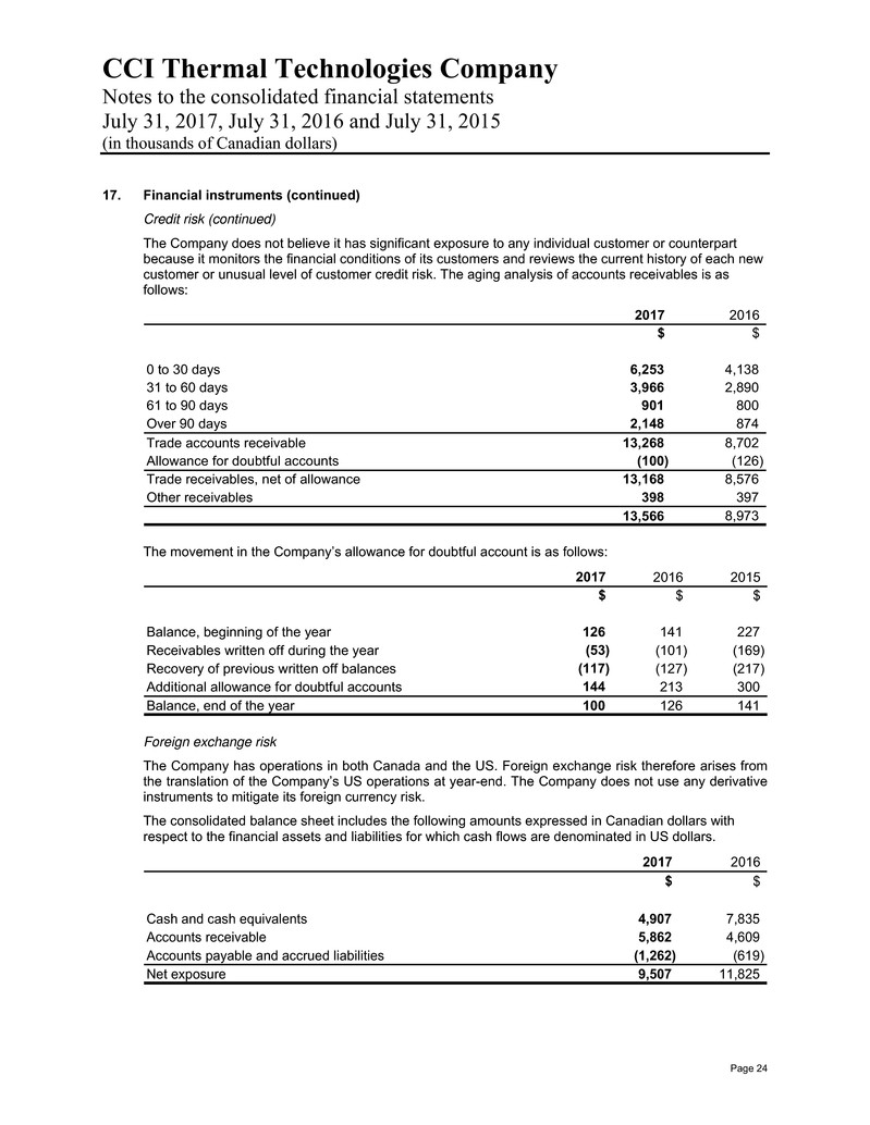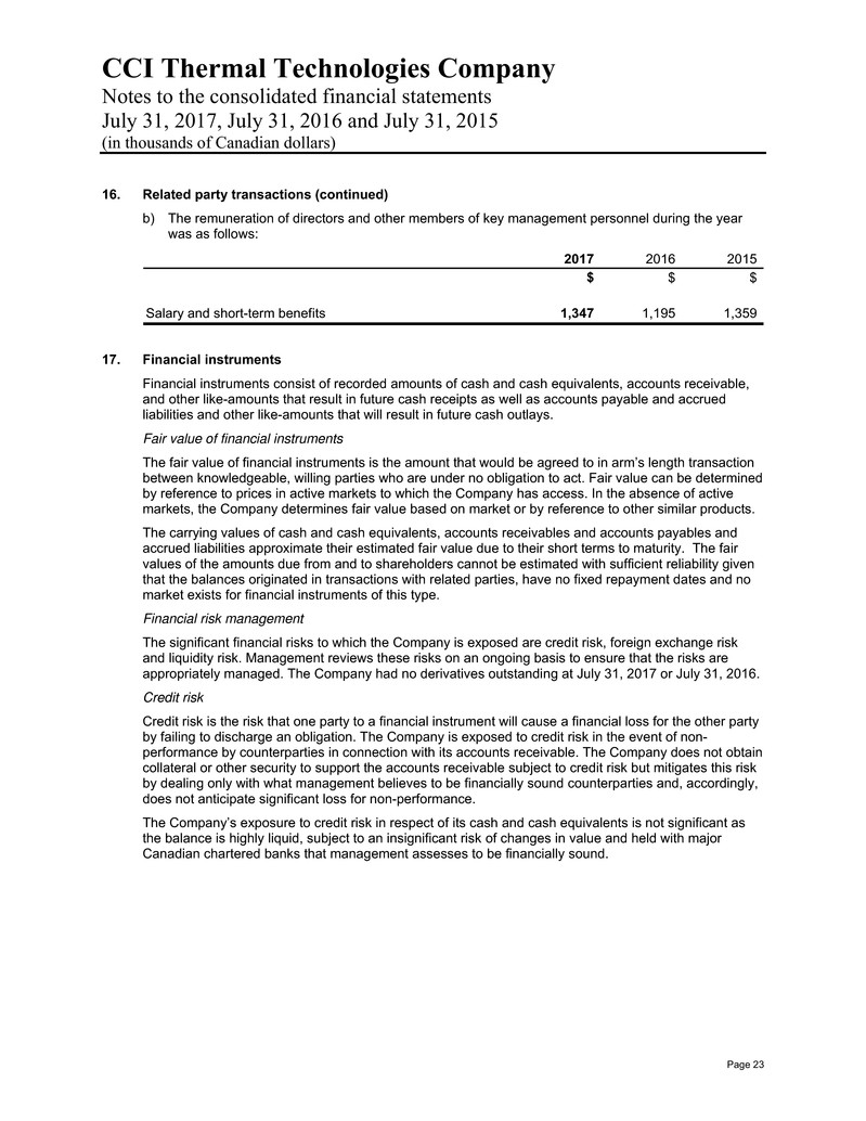 respects, the financial position of CCI Thermal Technologies Inc. and its subsidiaries as of July 31,