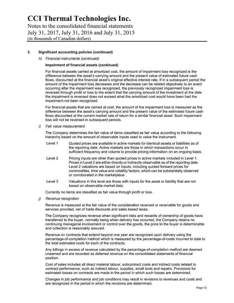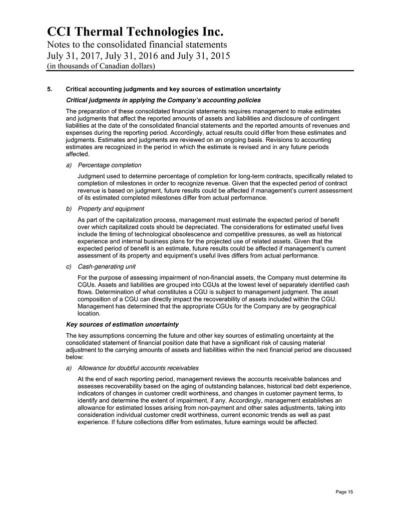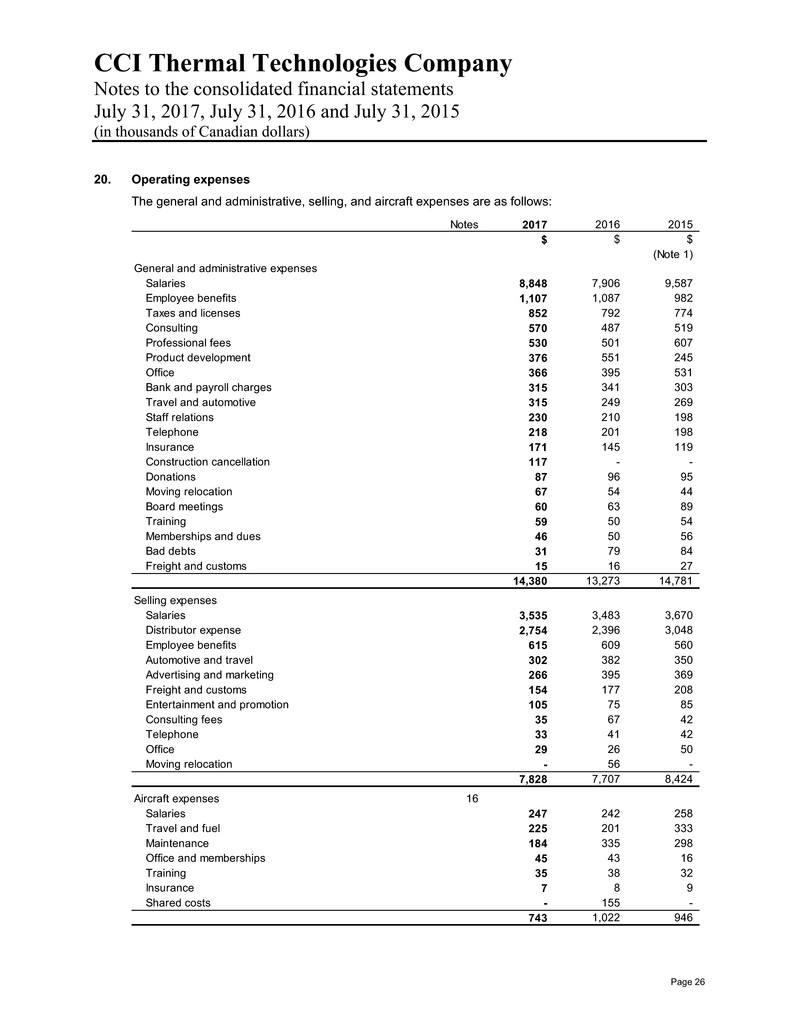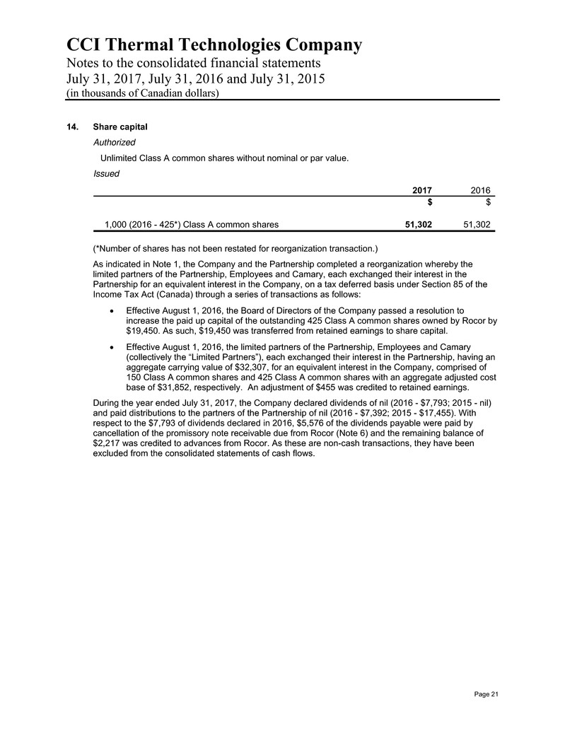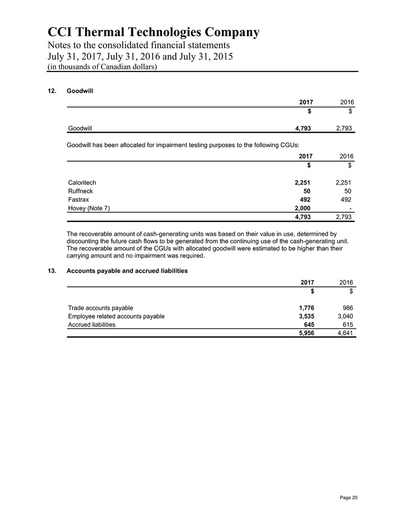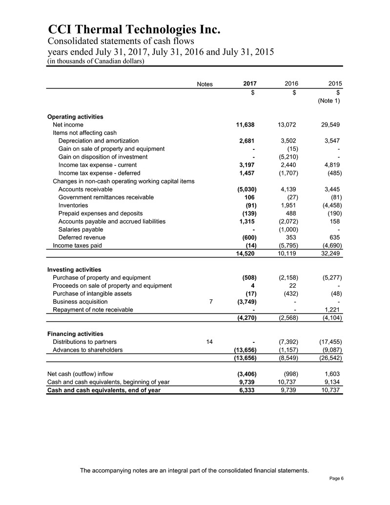 respects, the financial position of CCI Thermal Technologies Inc. and its subsidiaries as of July 31,
