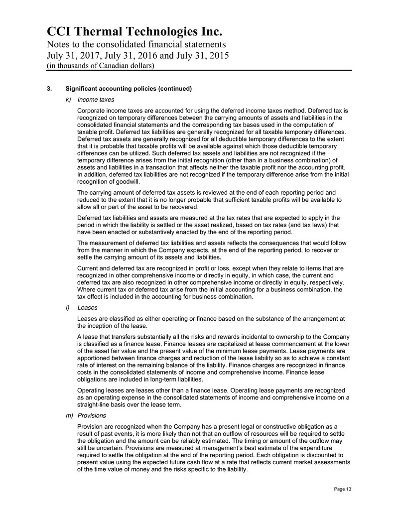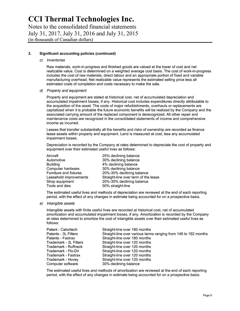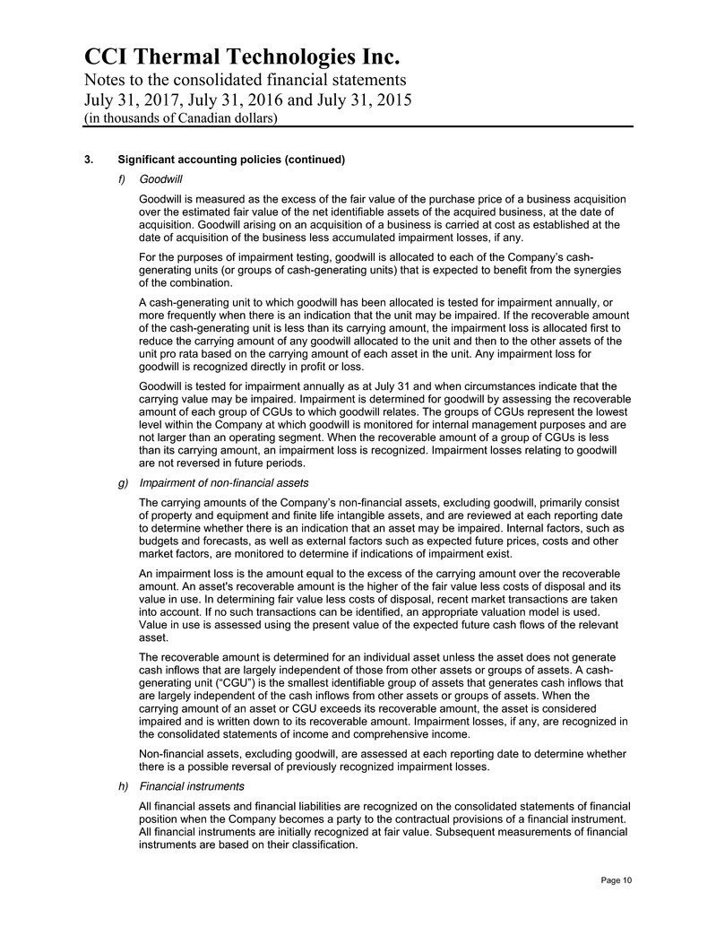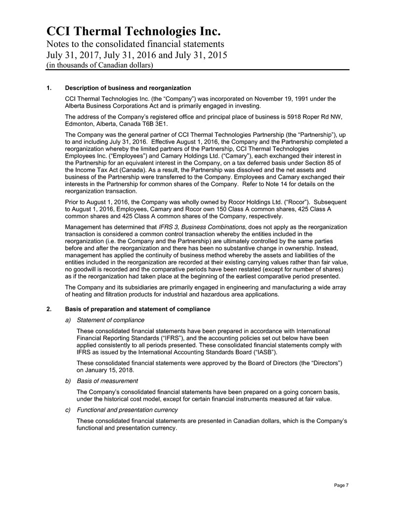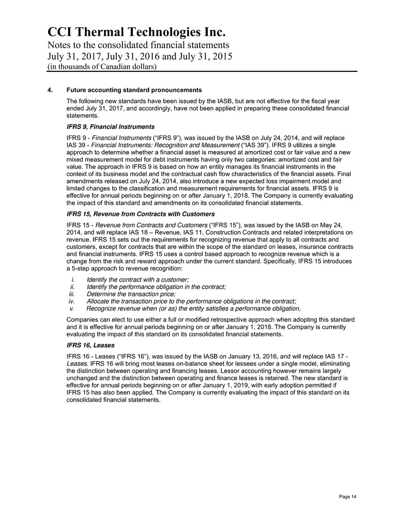 period ended July 31, 2017, in accordance with International Financial Reporting Standards as issued